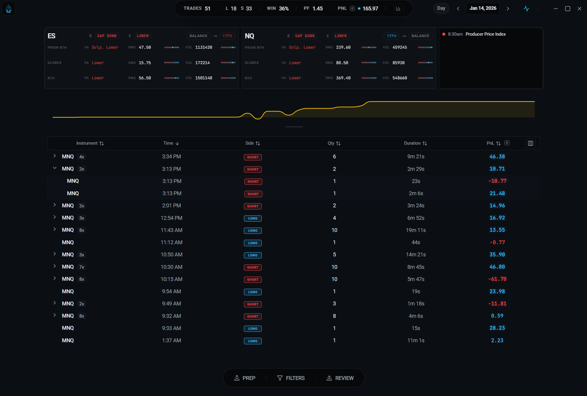 Open FlowLogr post-session. Annotate your edge on the actual charts.